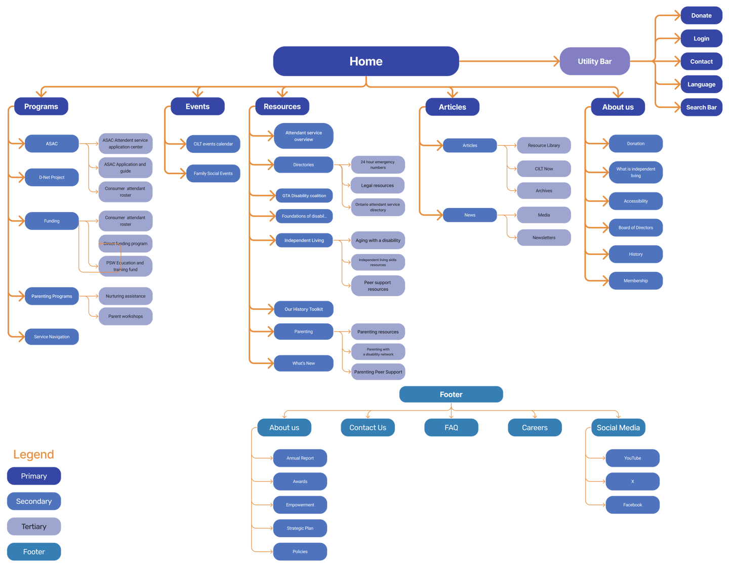 We used the Card Sorting Technique to redesign the ILT website’s information architecture. Result is this new sitemap that categorizes pages in related groupings.