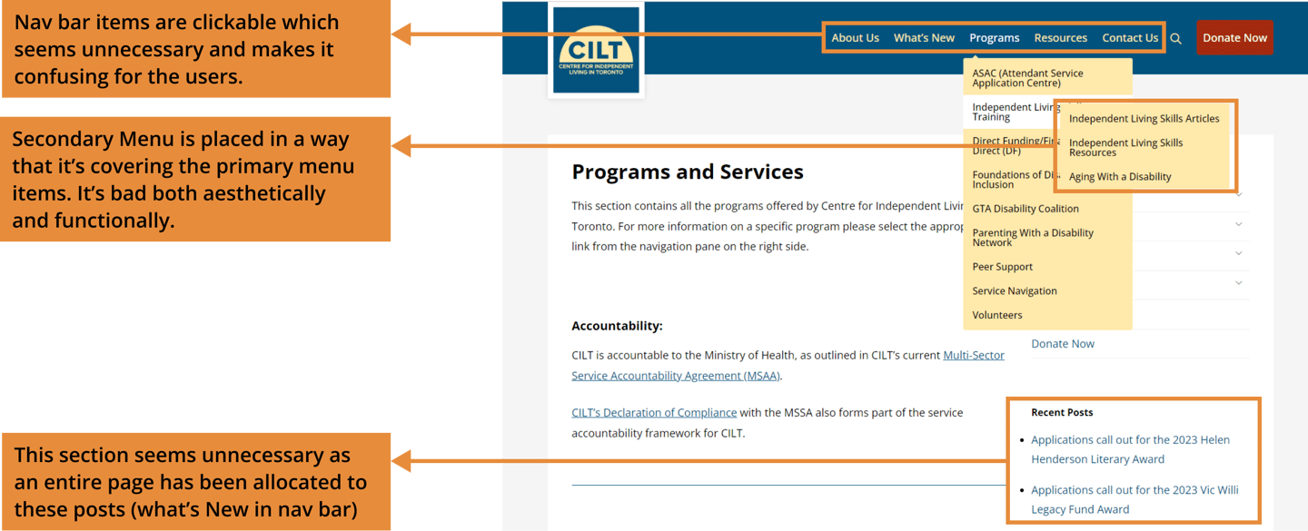 In 2012, I.L.T's website was initially created with a design and information structure that has since become outdated. Navigating the website can be quite overwhelming for visitors searching for information.